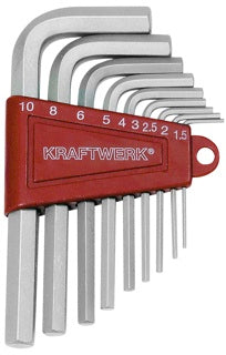 Serie chiavi maschio esagonali da 1,5 a 10 mm. Composta da 9 pezzi. A richiesta è possibile ordinare tutti i prodotti della linea Kraftwerk