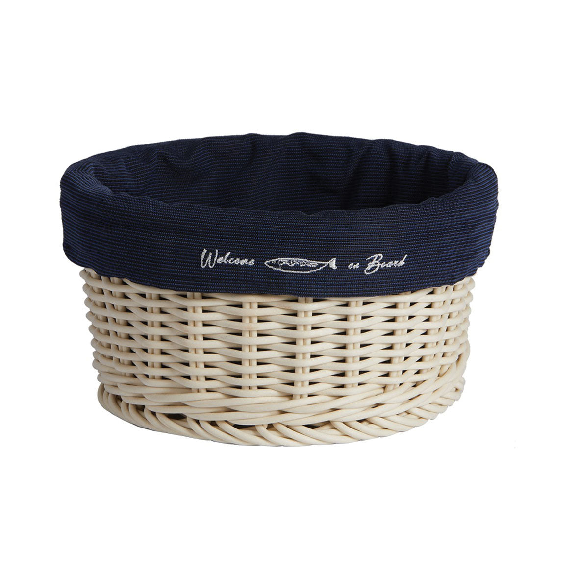 Hawaii è una collezione di cesti di diverse dimensioni e utilizzi, realizzati in polipropilene ultra resistente ai raggi UV, antiurto, resistente alle intemperie, ecc. Sono impermeabili, facili da lavare, fatti a mano e con un’infinità di usi. La fodera interna è realizzata in tessuto impermeabile e resistente alla candeggina, adatto all’uso esterno, resistente ai raggi solari e con un disegno nautico ricamato, molto fine ed elegante. La linea Hawaii è disponibile in avorio con interno blu navy o in nero con fodera beige. Cesta per il pane Hawaii in colore ECRU, con fodera interna blu. Diametro 20 cm x 10 cm h