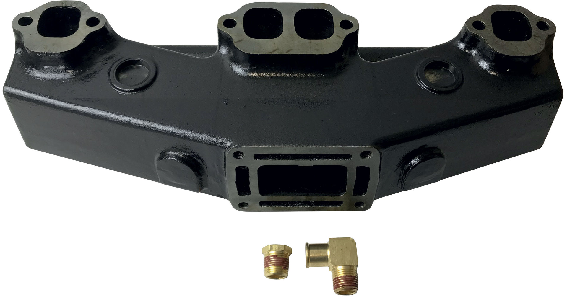 Collettore di scarico in ghisa per Volvo Penta 5.7L GM 350 CID V8 (1990+).R.O.: Volvo: 3847501, 3852374, 3857579, 3857723; Bombardier: 0914035, 3852374, 3857579, 3857723