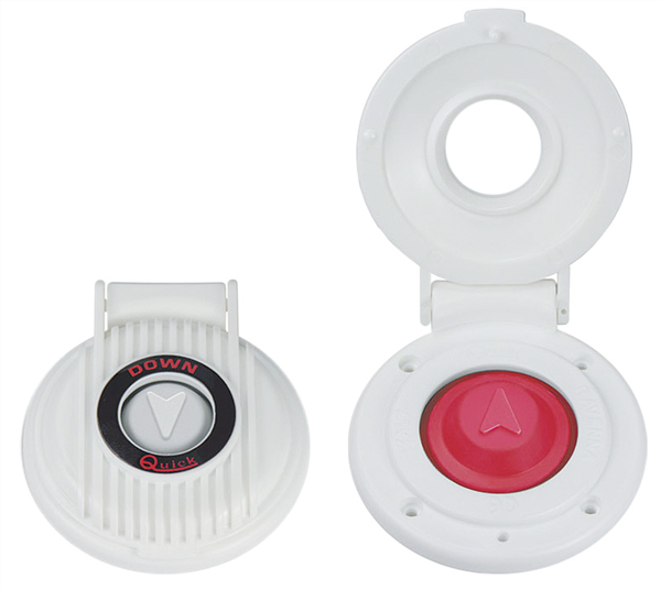 Pulsanti a piede “QUICK” con protezione per evitare la pressione accidentale del pulsante. Colore bianco/nero: