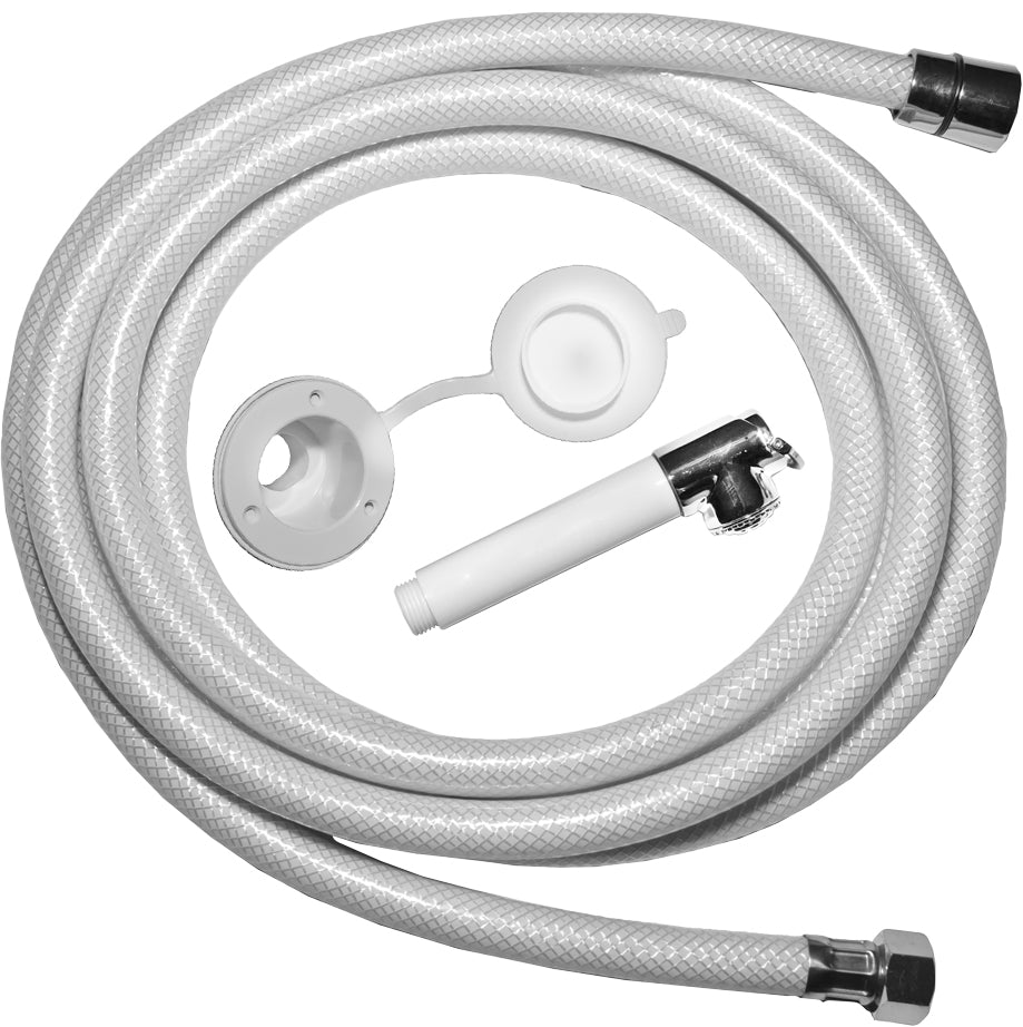 Docce a pulsante in ottone cromato con supporto ad incasso in ABS, complete di cappuccio in pvc bianco a tenuta stagna. Dim. diam. flangia mm 84, foro da praticare mm 54: