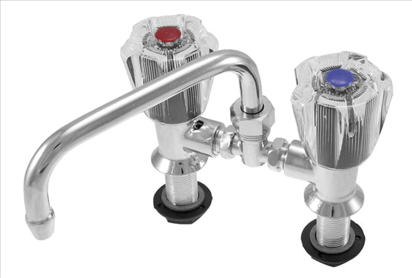 Miscelatore a ponte con canna girevole in ottone cromato.