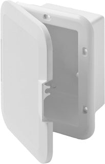 Nicchia piccola portatutto in materiale plastico colore bianco. Con Sportello. Altezza est. mm 210, altezza int. mm 150, larghezza est. mm 165, larghezza int. mm 110, profondità mm 80: