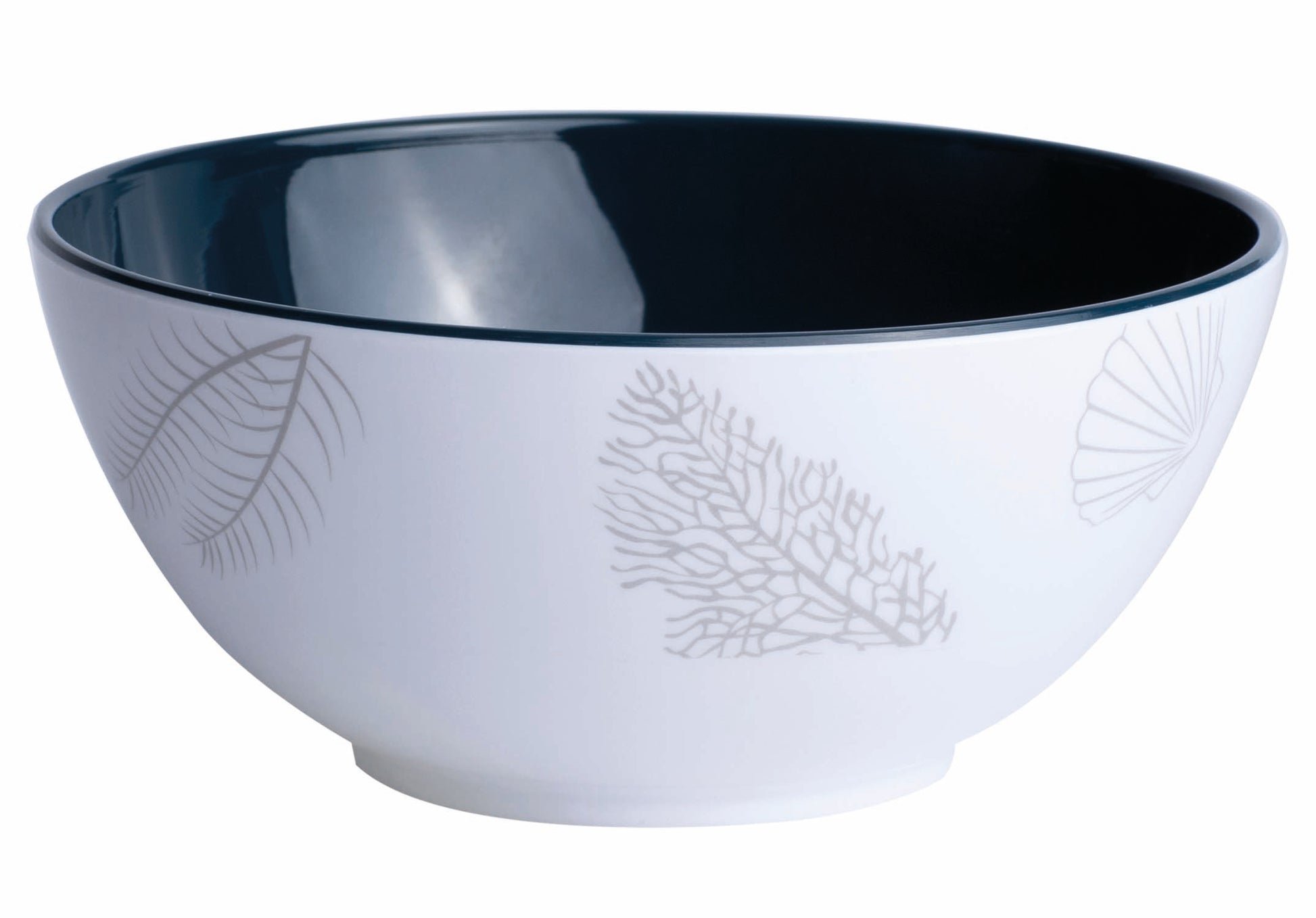 La nuova collezione LIVING è caratterizzata da un leggero disegno di coralli in blu navy e beige, elegante e contemporaneo, perfetto per tutte le occasioni. Le stoviglie, realizzate al 100% in melammina, ed i bicchieri, realizzati in Tritan BPA Free, sono molto resistenti e lavabili in lavastoviglie e presentano una base antiscivolo che ne impedisce lo scivolamento sul tavolo. Set di 6 ciotole, Ø15cm – H4,3cm.