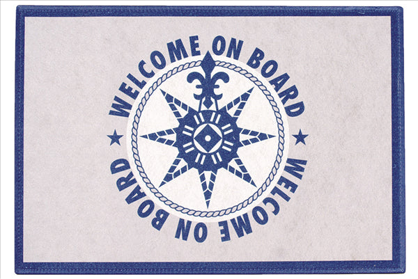 Tappetino ingresso WELCOME ON BOARD, in tessuto moquette con base