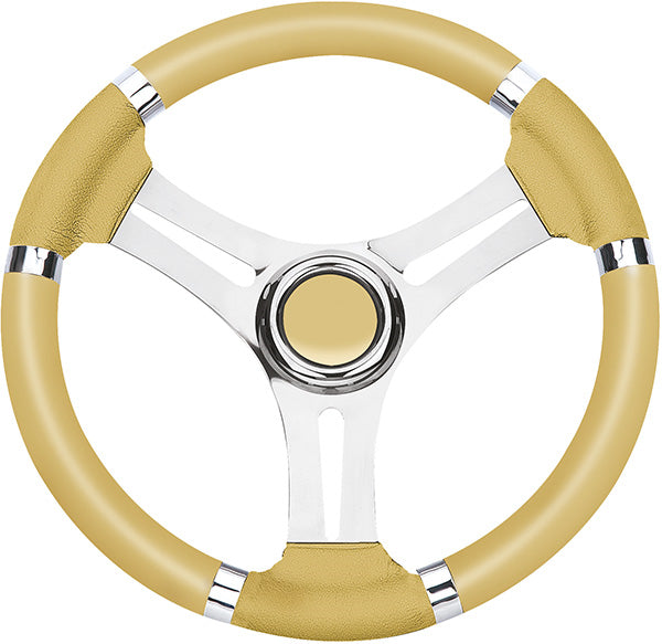 Volante diam. 35 cm TIPO 18R in poliuretano colore avorio con razza e mozzo in acciaio inox lucido a specchio. Approvato e certificato