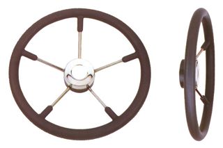 Volante in acciaio inox aisi 316 lucido con impugnatura in poliuretano colore grigio. Diam. Cm 40