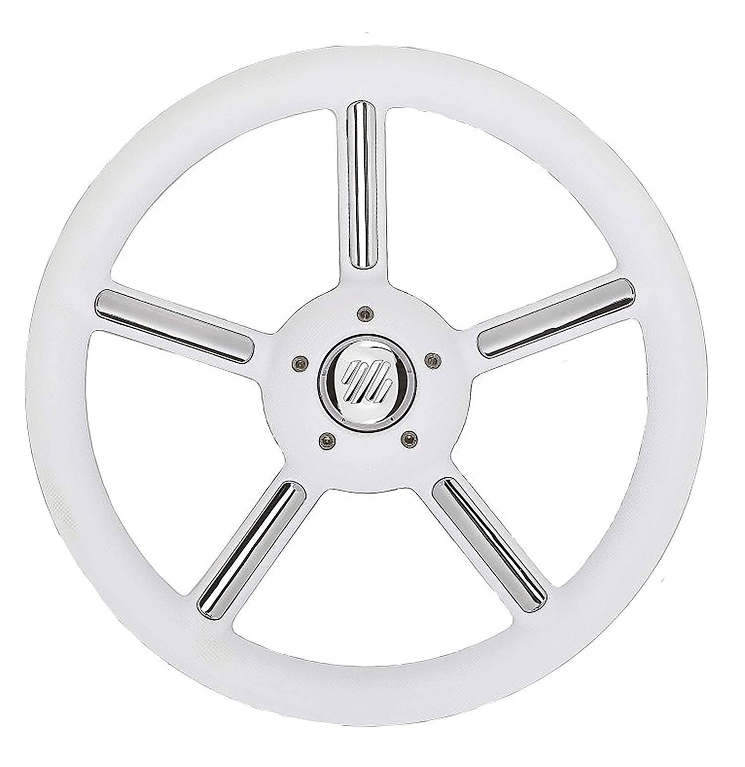 Volanti ULTRAFLEX a 5 razze con impugnatura in poliuretano. Cono 3/4’’ standard, completi di mozzo. Dimensioni Ø 350 mm -13.8". Soddisfano i requisiti della direttiva 2013/53/EU relativa alle imbarcazioni da diporto e sono marcati CE in conformità alle norme EN 28848 – EN 29775 ed ABYC P22. Volante V56W/CH, colore bianco.
